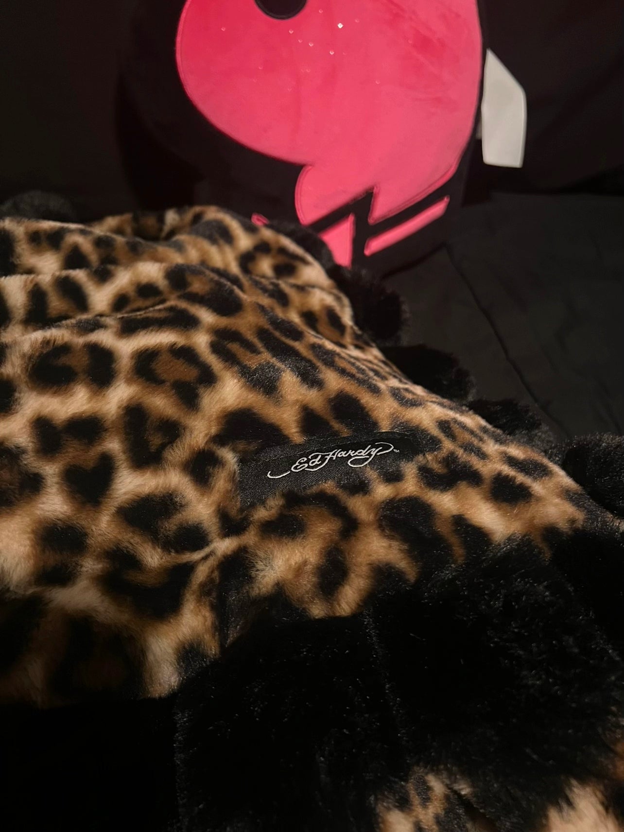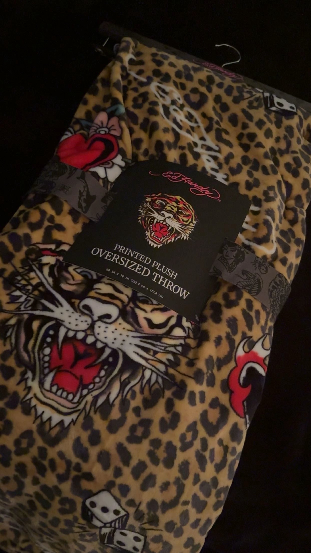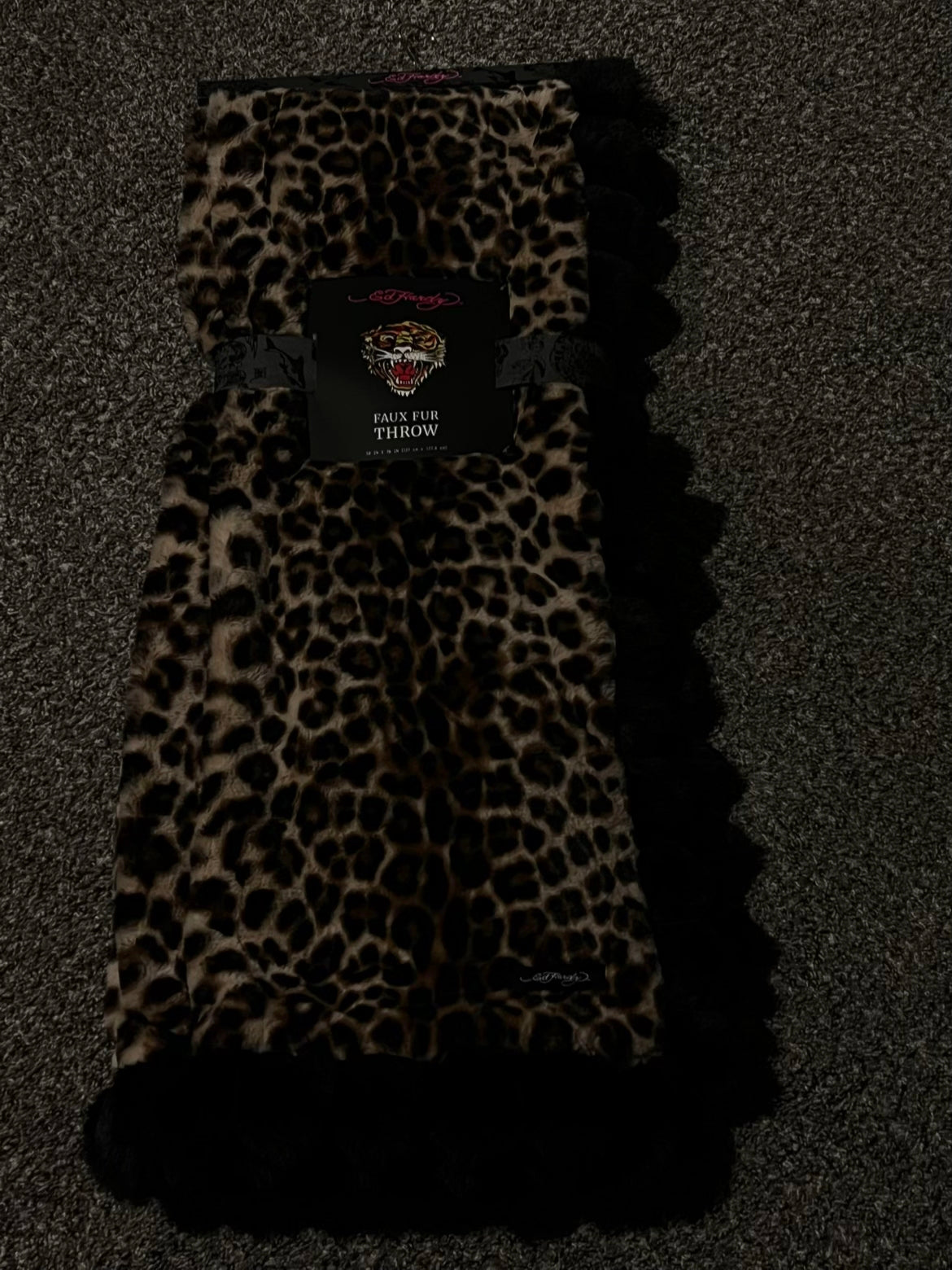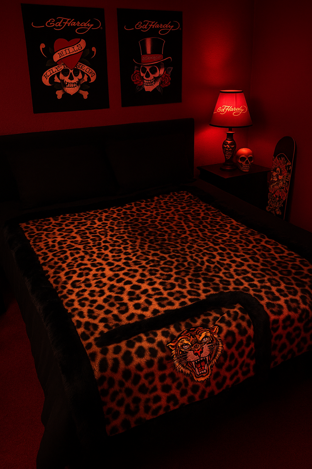 Part of an ultra-rare drop, the Faux-Pur Throw was made for collectors, chaos lovers, and cozy rebels. Framed in black pom trim with that signature Ed Hardy bite—this isn’t decor. It’s a declaration.